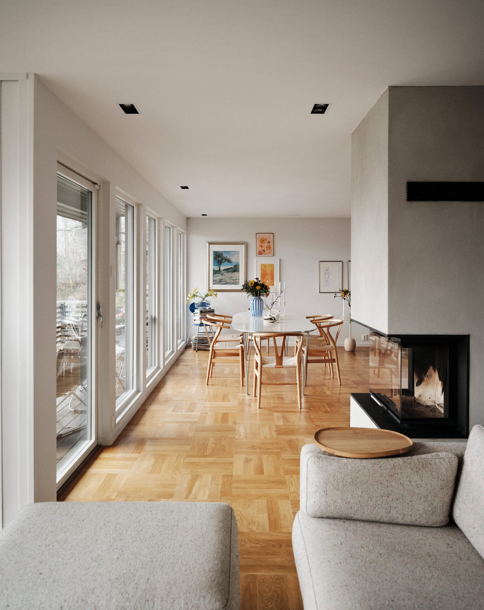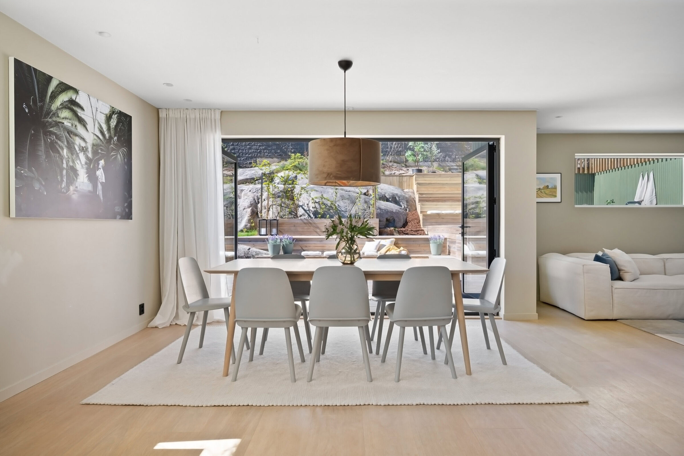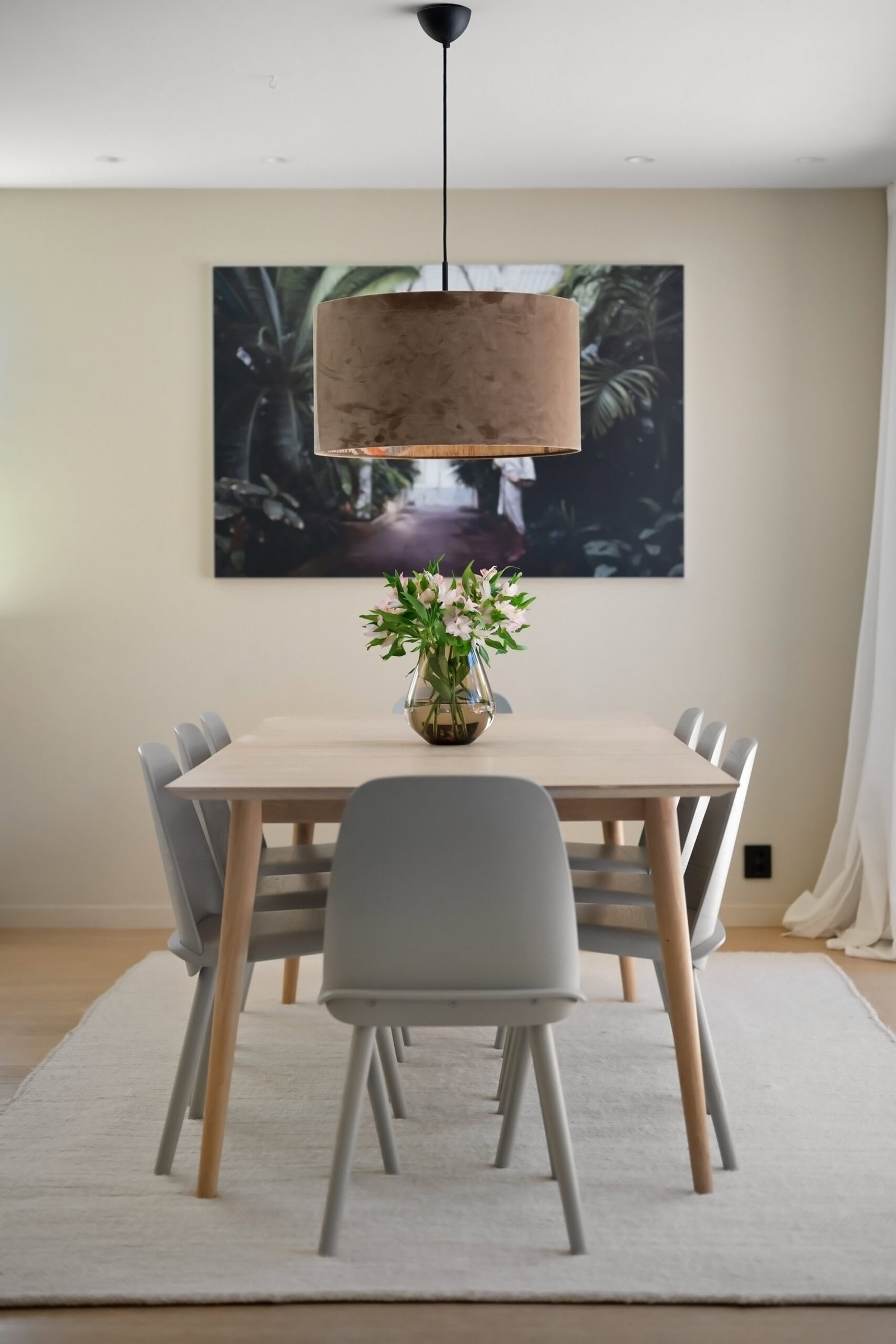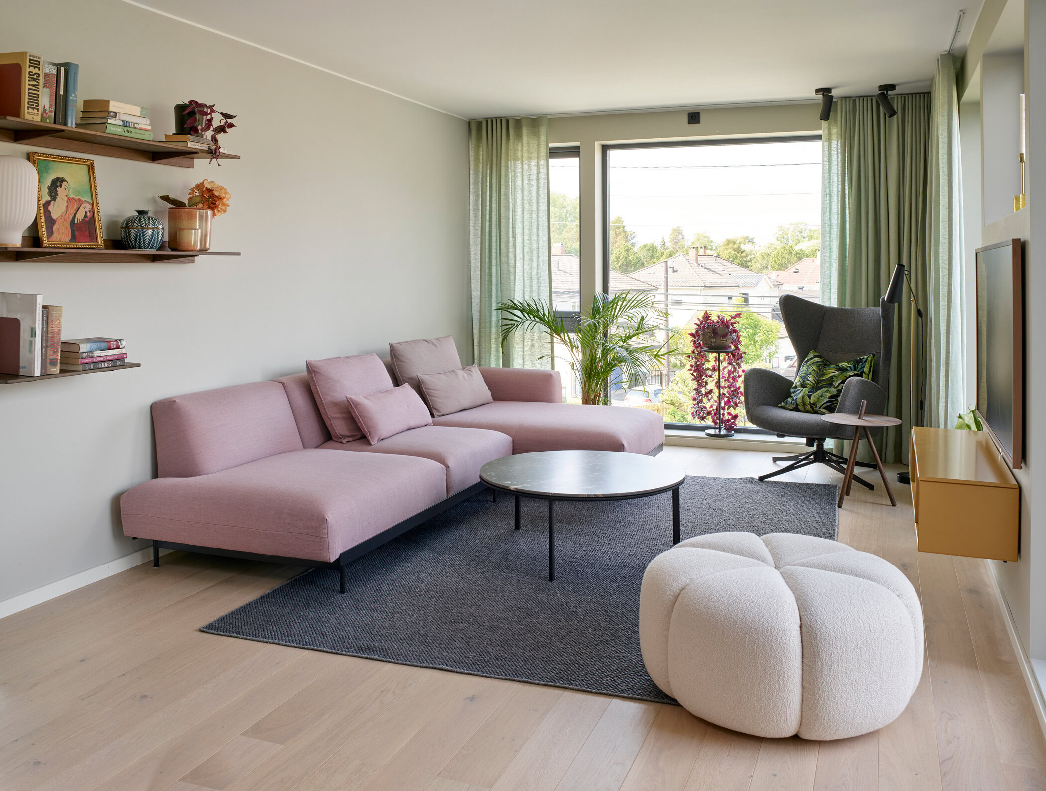 Vi gjorde ingenting med hverken farger eller belysning, men brukte heller tid på å sette sammen riktige møbler og interiør så det hang godt sammen uten at det skulle se ut som om det var visning. Noe ble tatt med videre fra leiligheten de bodde i før, men det meste ble nytt. InPlace koordinerte alle innkjøp og sørget for at prosessen gikk så smooth som den kunne.