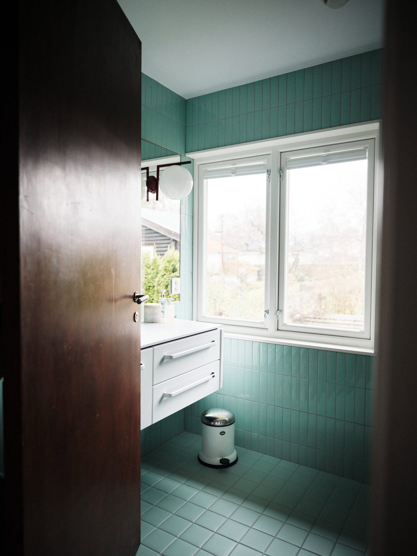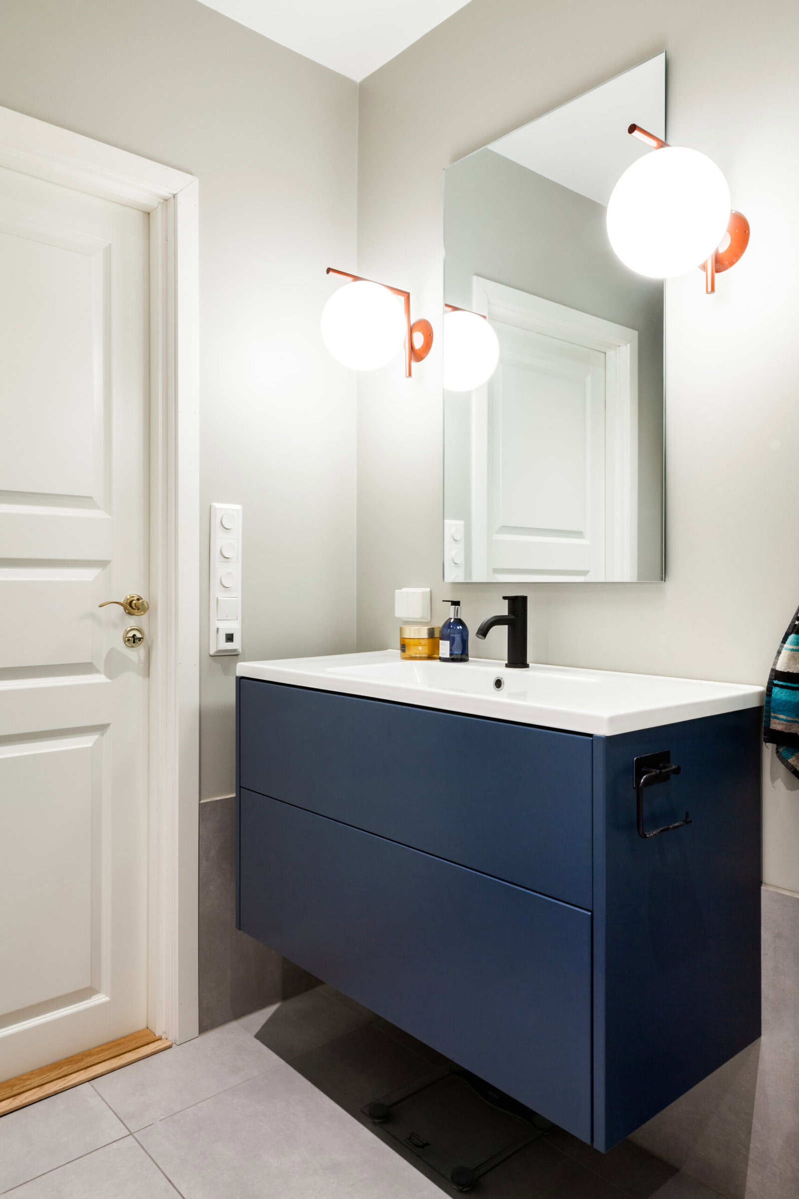 Den kule dama som bor her måtte pusse opp det gamle slitne badet før det begynte å lekke ned til naboen under. Praktisk og med innslag av noe blått, var bestillingen.