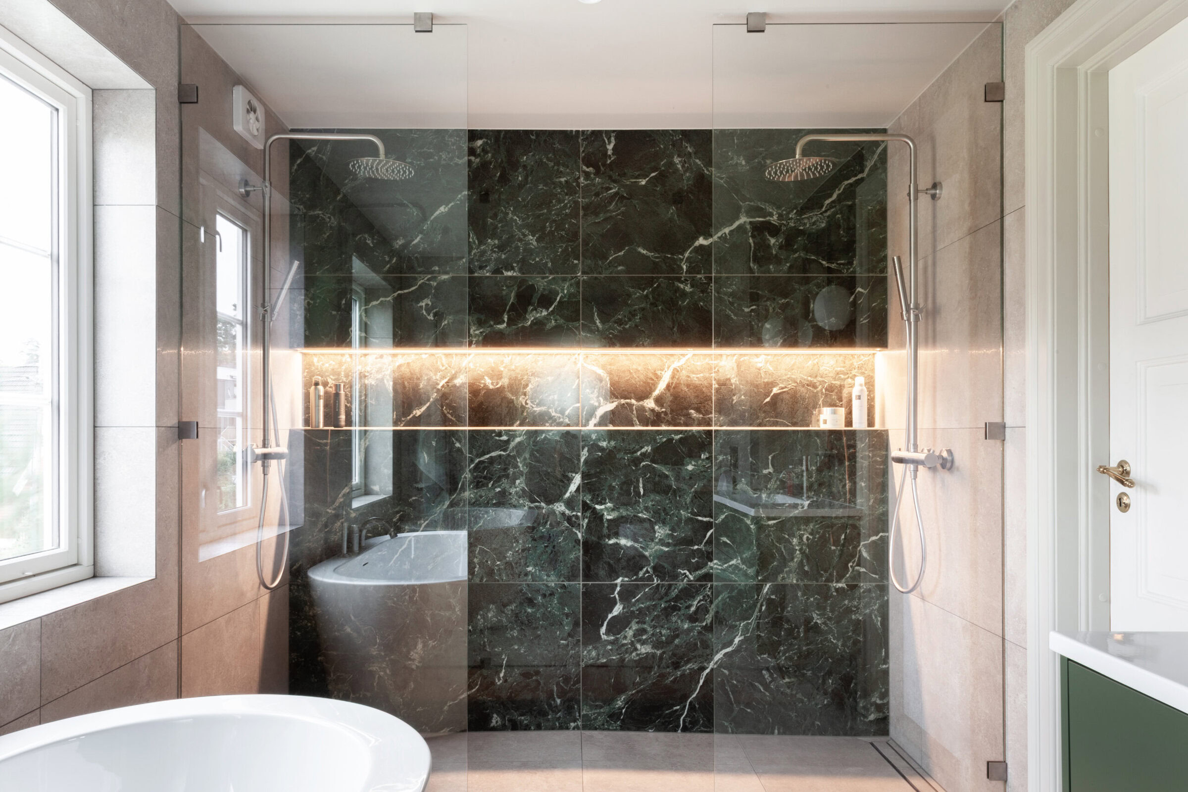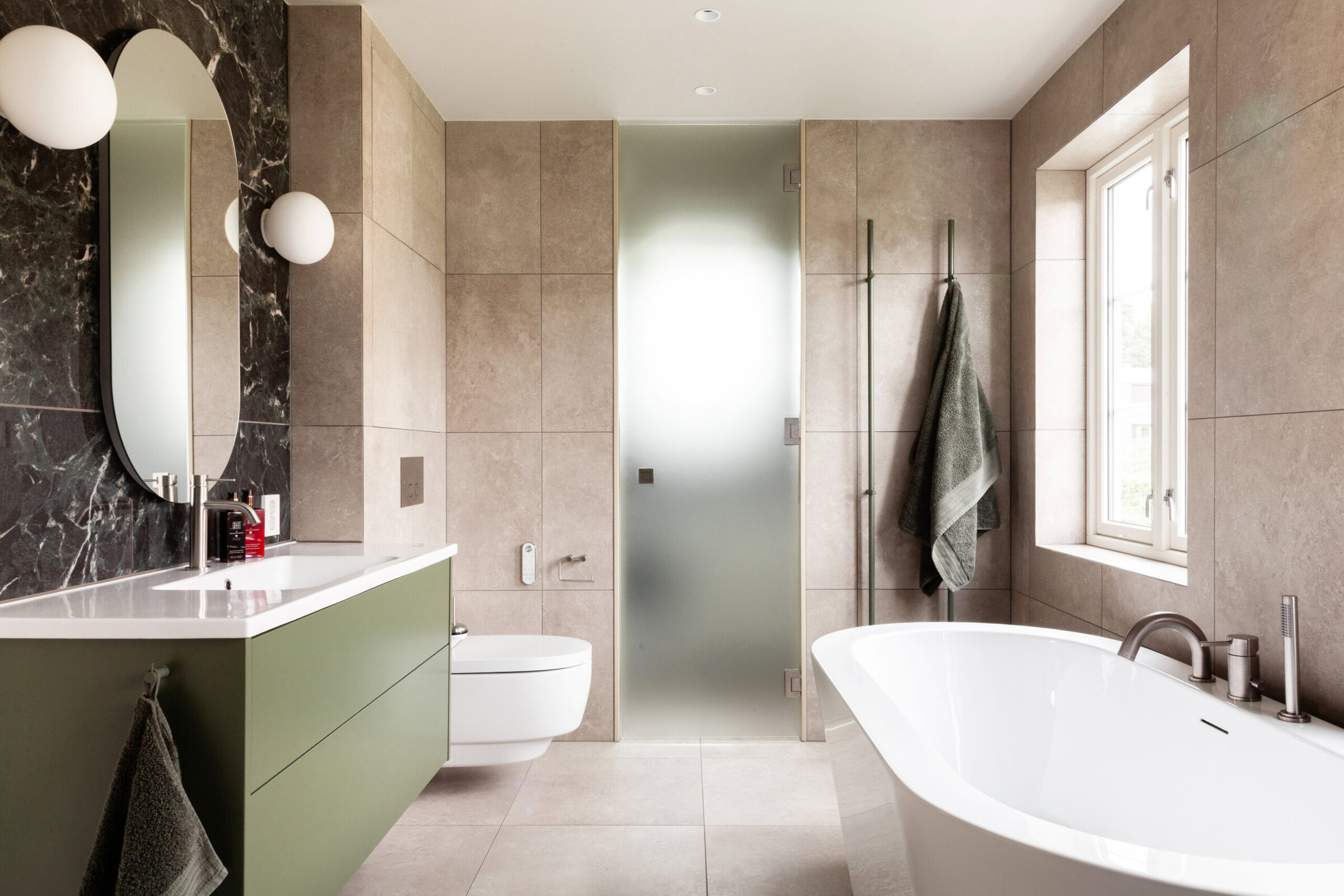 Kunden fikk også komplett forslag til fliser, innredning og belysning, helt ned til minste detalj.