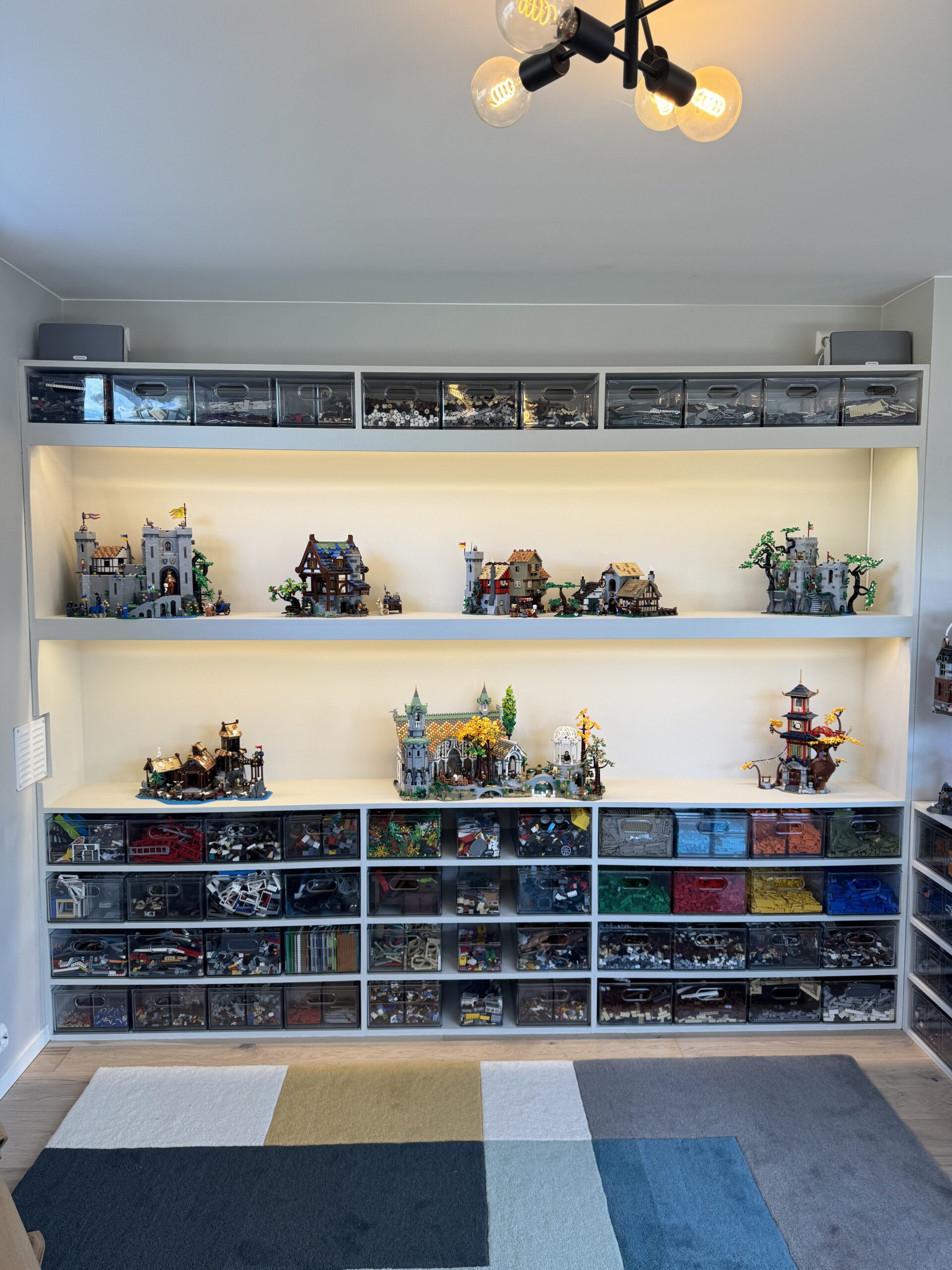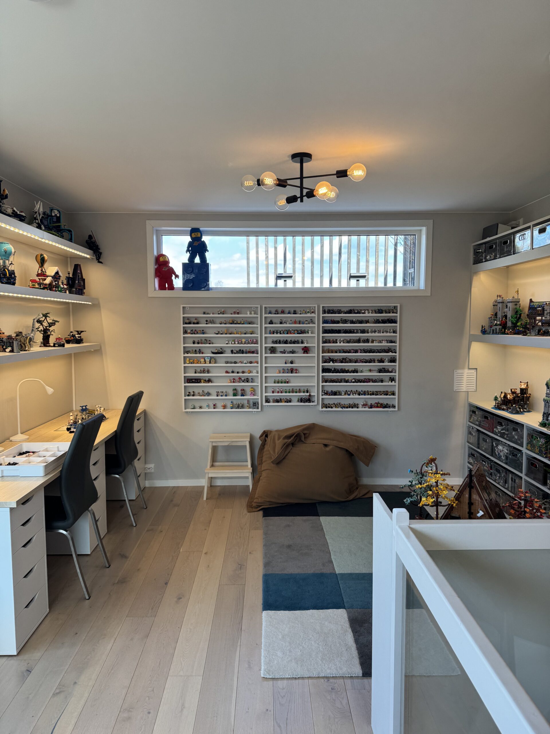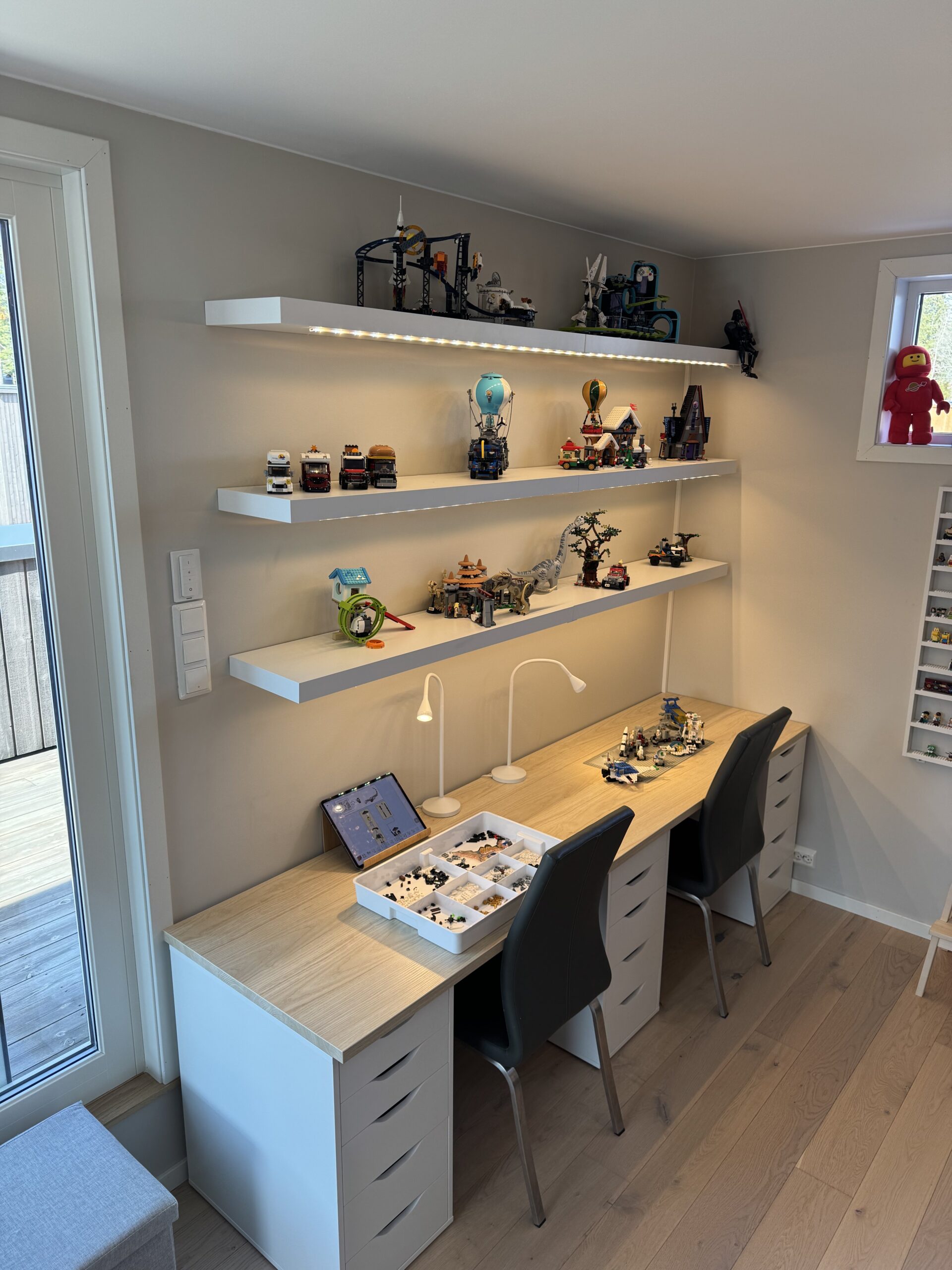 InPlace tegnet ny planløsning for Legorommet, med spesialtilpassede hyller, en pult til å bygge ved, og i samarbeid med kunden fant vi til slutt bokser som legoen var egnet til å ligge i. Et av de morsomste oppdragene InPlace har hatt.