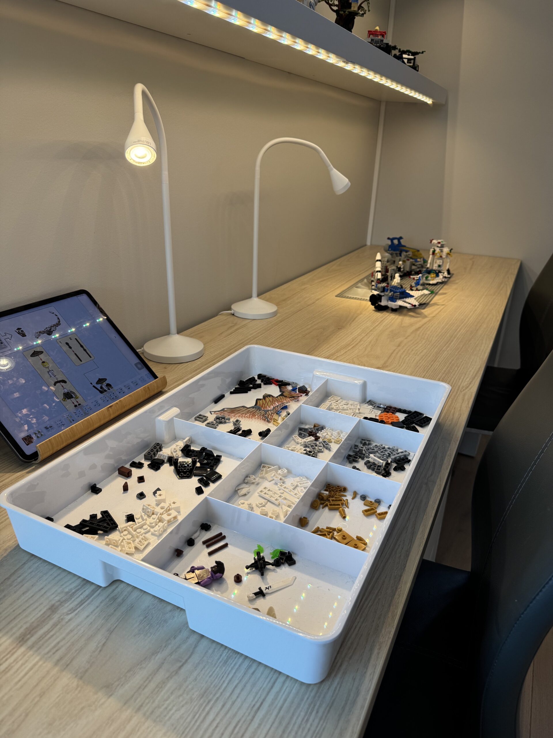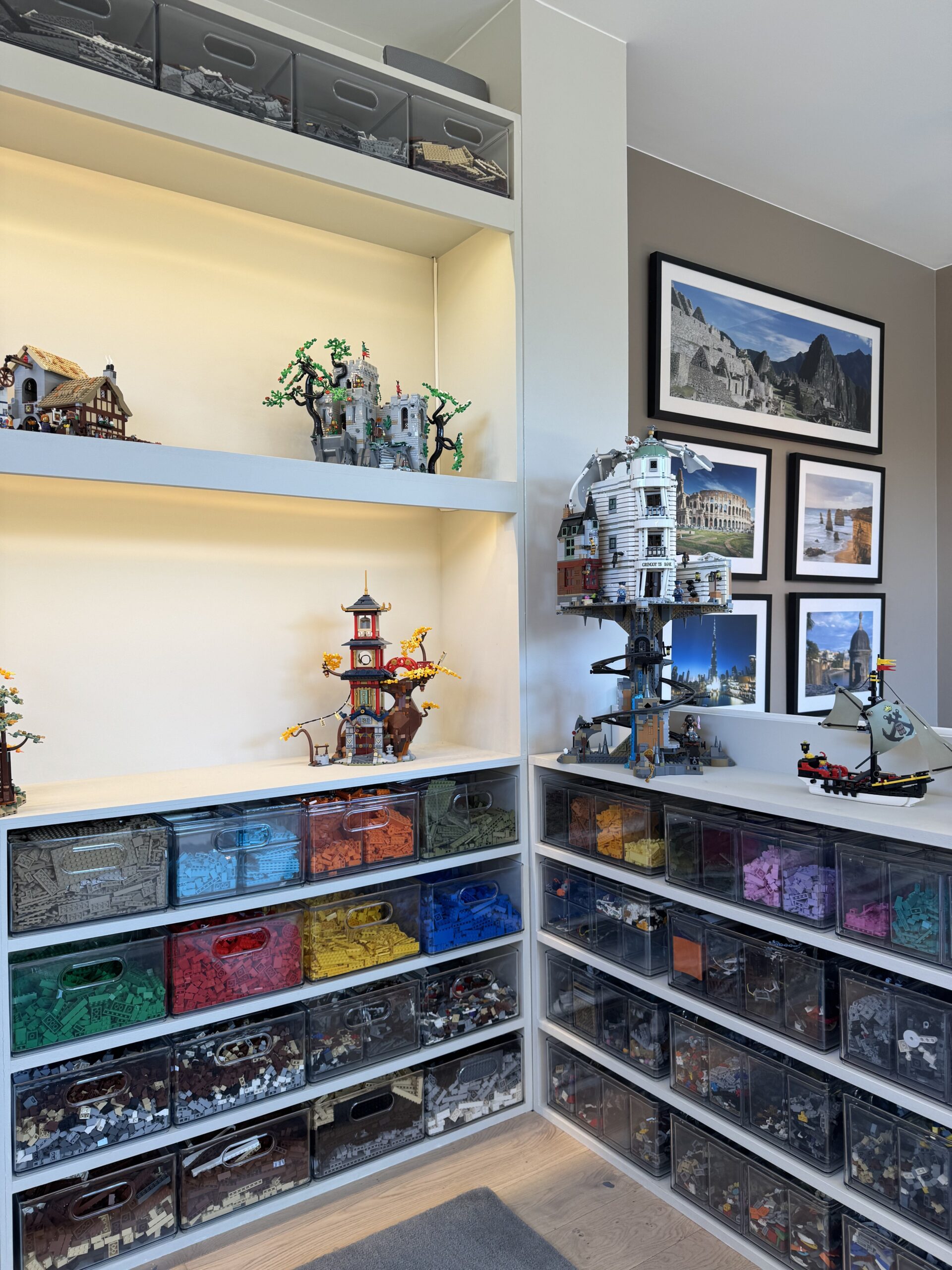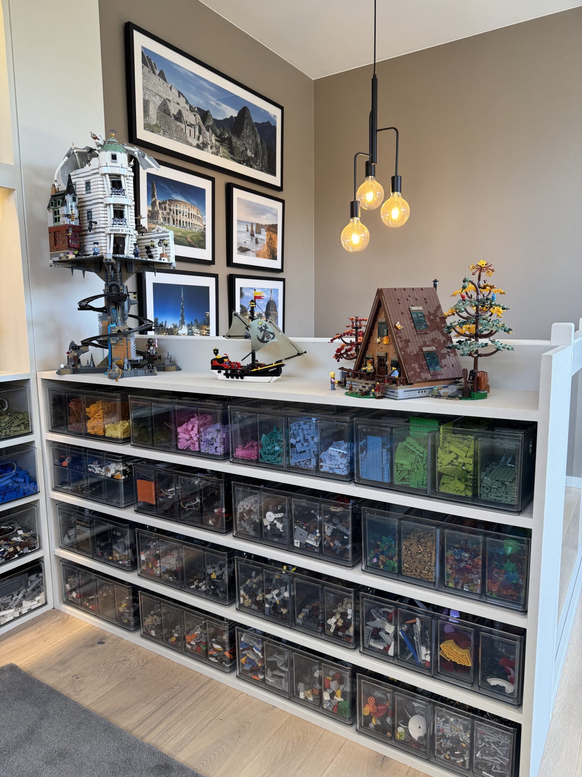 InPlace tegnet ny planløsning for Legorommet, med spesialtilpassede hyller, en pult til å bygge ved, og i samarbeid med kunden fant vi til slutt bokser som legoen var egnet til å ligge i. Et av de morsomste oppdragene InPlace har hatt.