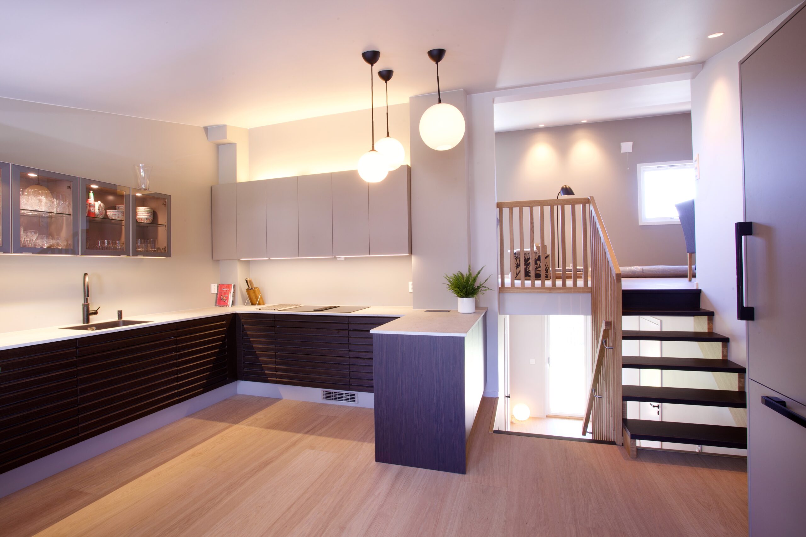InPlace tegnet ny planløsning for hele huset, ny belysningsplan, fargeplan, utarbeidet forslag til fliser, løsning og innredning til badene, forslag til gulv, innredning til kjøkkenet, og var i tett samarbeid med både entreprenør og engasjert kunde gjennom hele prosessen, både som en samarbeids- og sparringspartner.